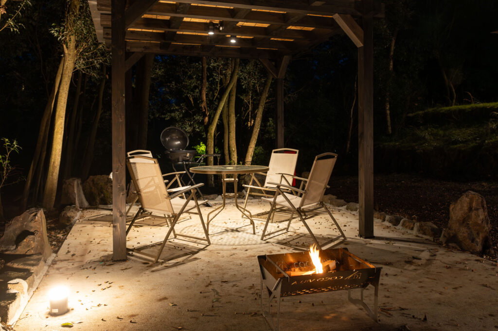 焚き火エリアには、COCO VILLAオリジナル焚き火台をご用意。