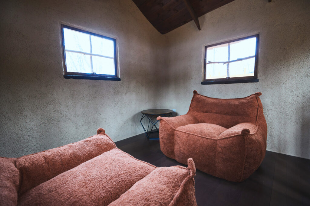 室内にはソファや寝袋、ストーブを備えており、読書をしたり、静かに語り合ったりと、それぞれの過ごし方が広がります。
