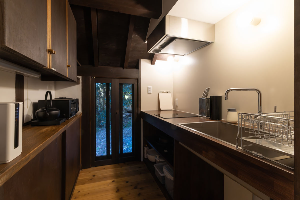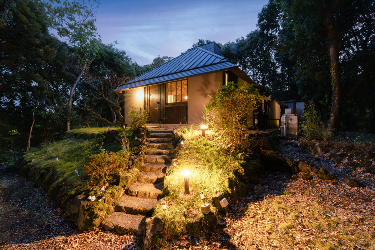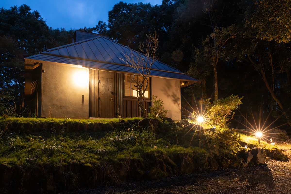 夕暮れとともに灯りがともれば、周囲の森の気配がすっと近くに感じられます。