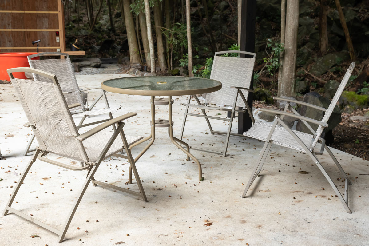 地面はコンクリートでフラットに造られており、テーブルやチェアを広げてもゆとりのあるつくり。