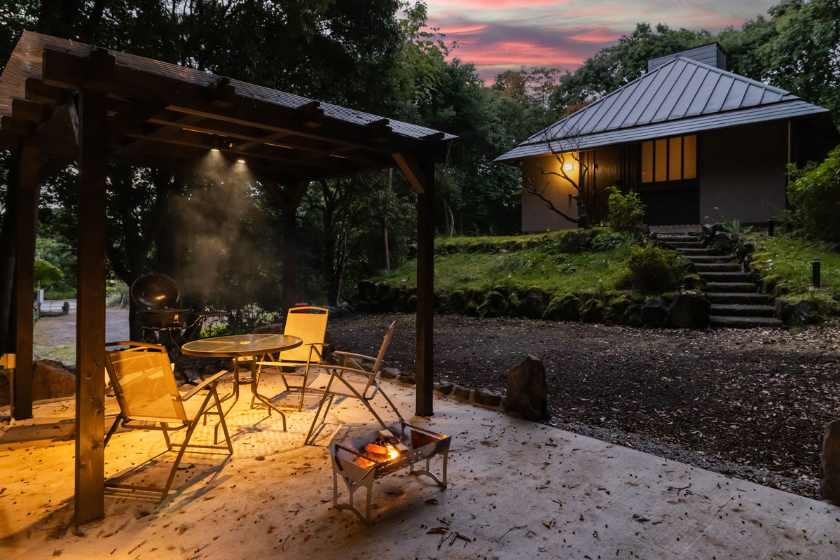 庭ではBBQや焚き火を楽しみながら、