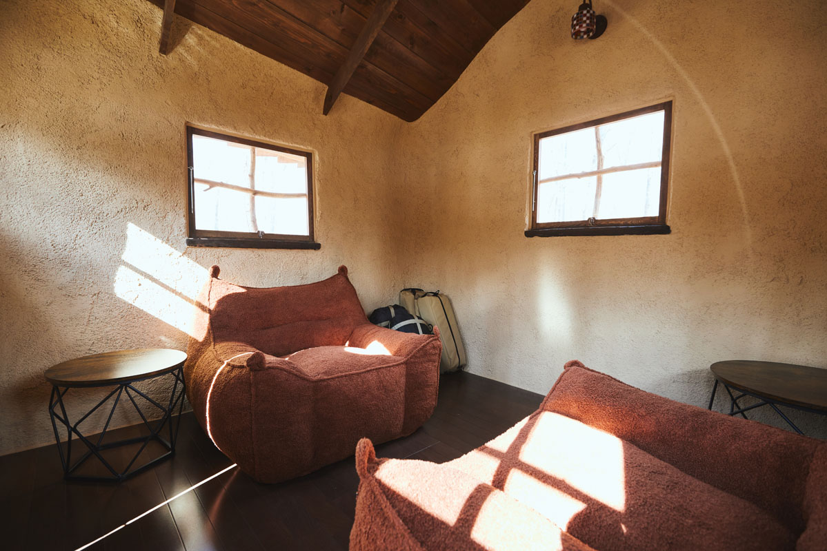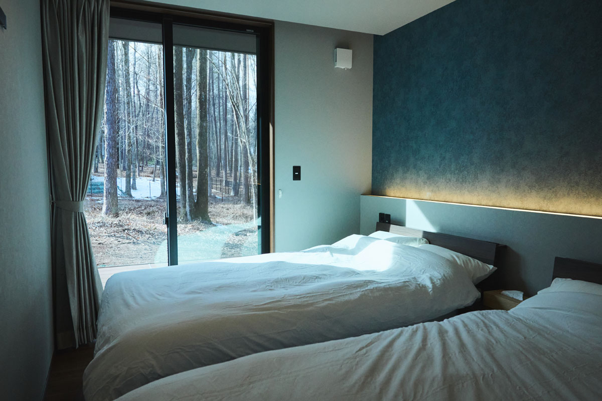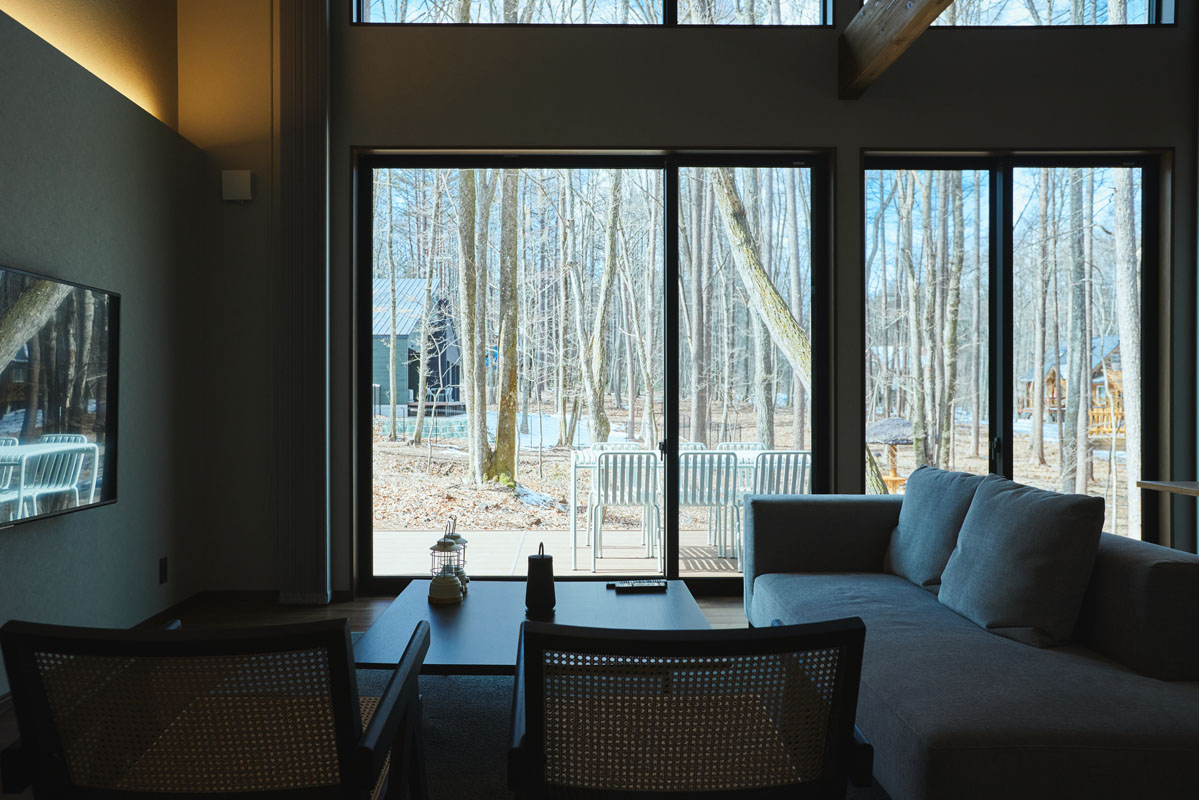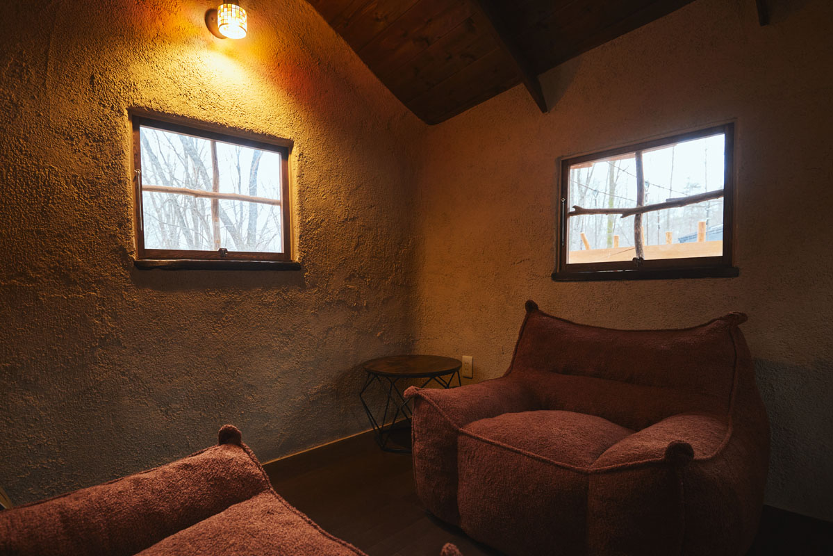 窓の外には森の景色だけが広がり、読書をしたり、静かに語り合ったり、何もしない時間を味わうのにもふさわしい空間です。