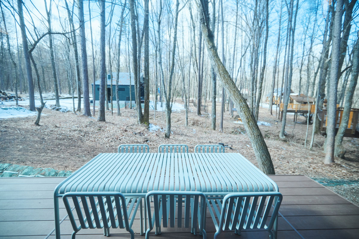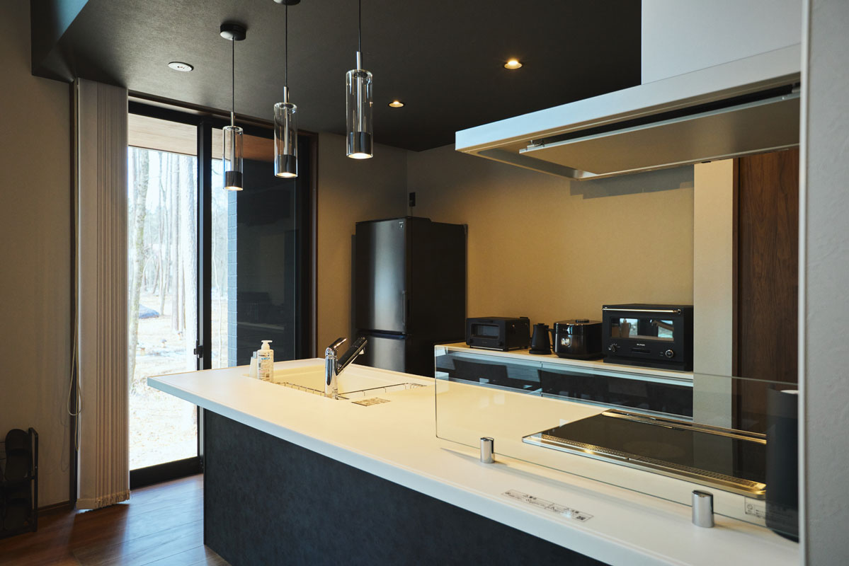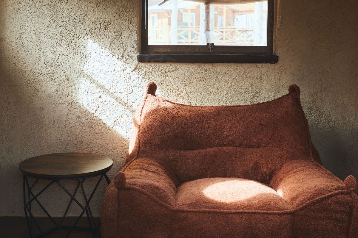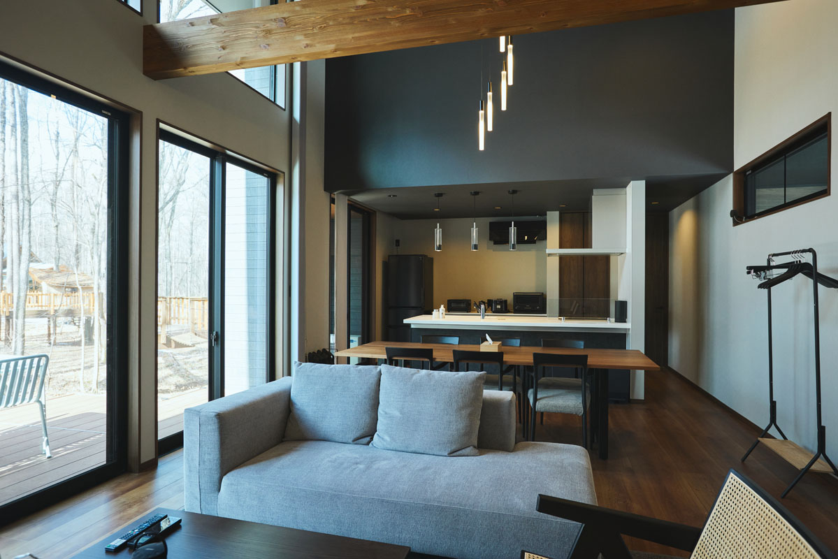 窓の外には森の景色だけが広がり、読書をしたり、静かに語り合ったり、何もしない時間を味わうのにもふさわしい空間です。