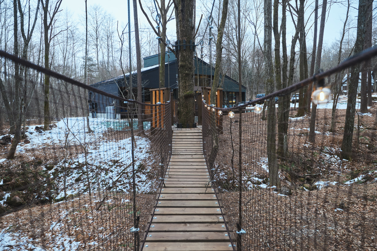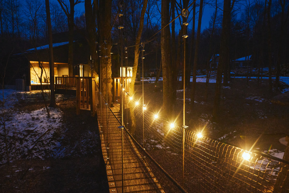 ととのいスペースから吊橋を渡って向かうその道のりは、日常から一歩離れるための小さな高揚感を生み出します。