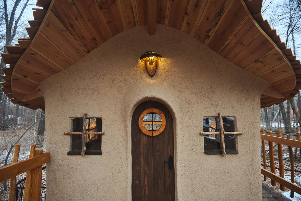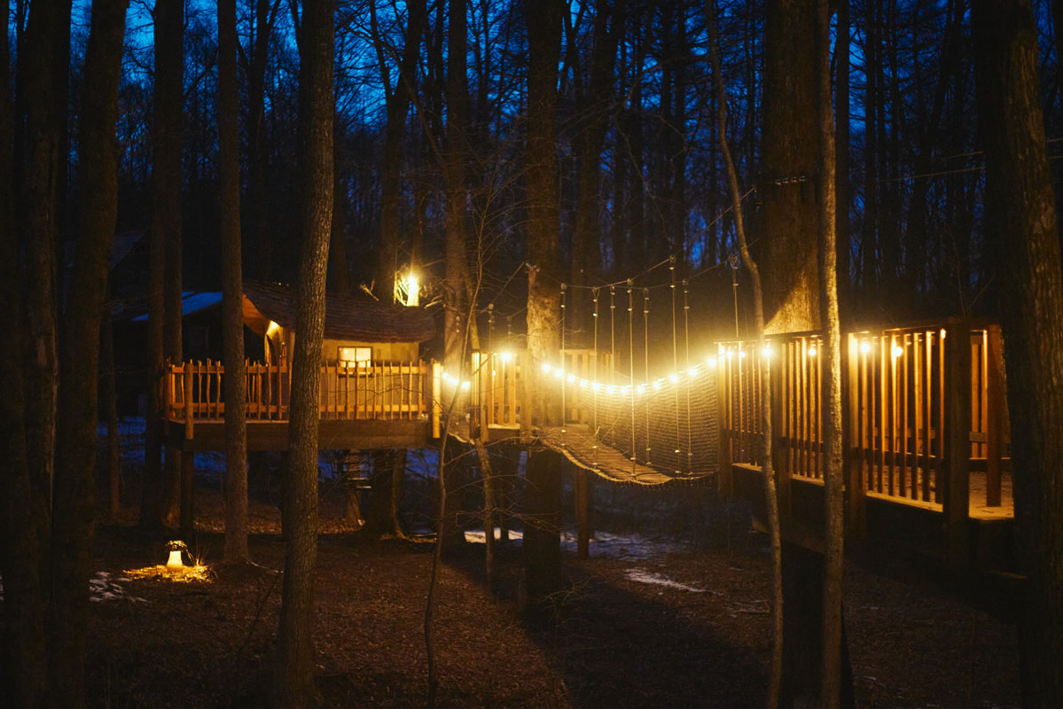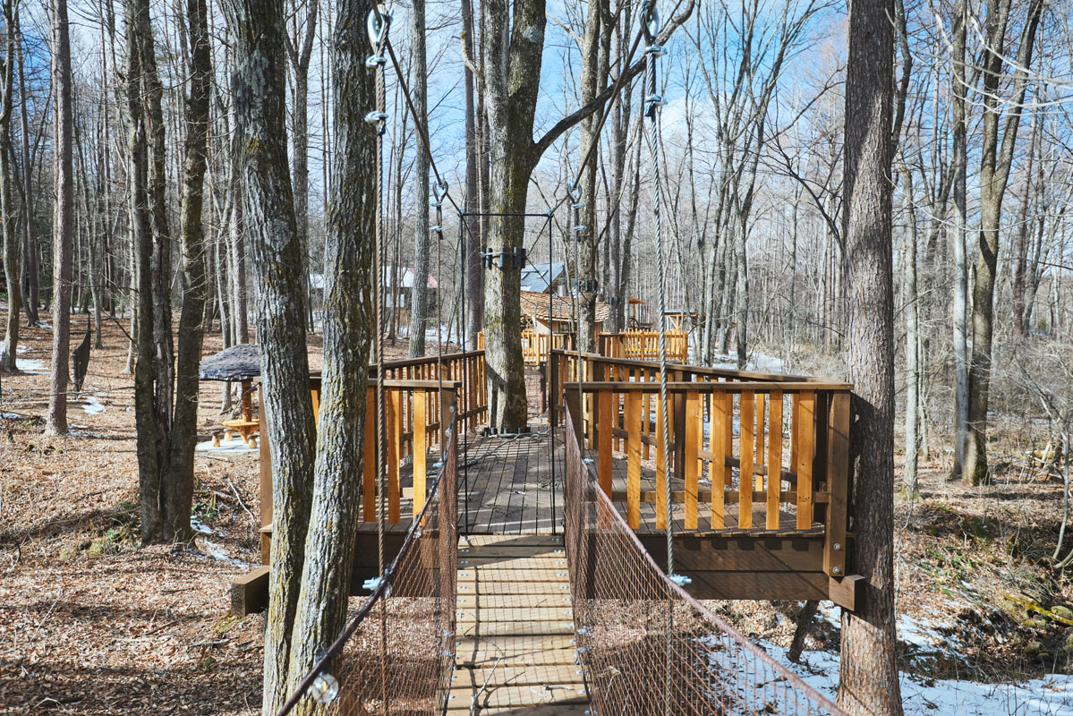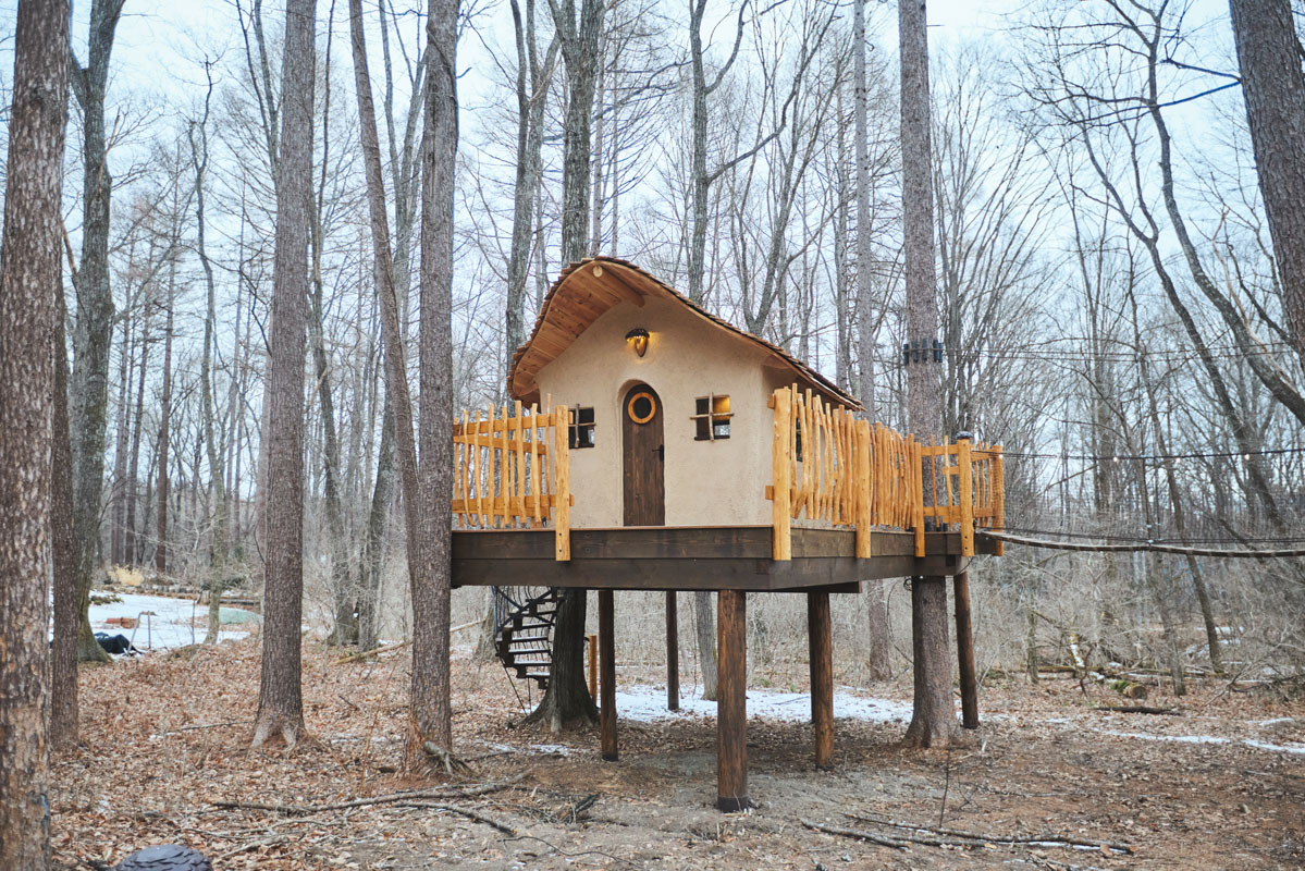 木々のあいだに浮かぶツリーハウスは、子どもにとっては秘密基地のように、