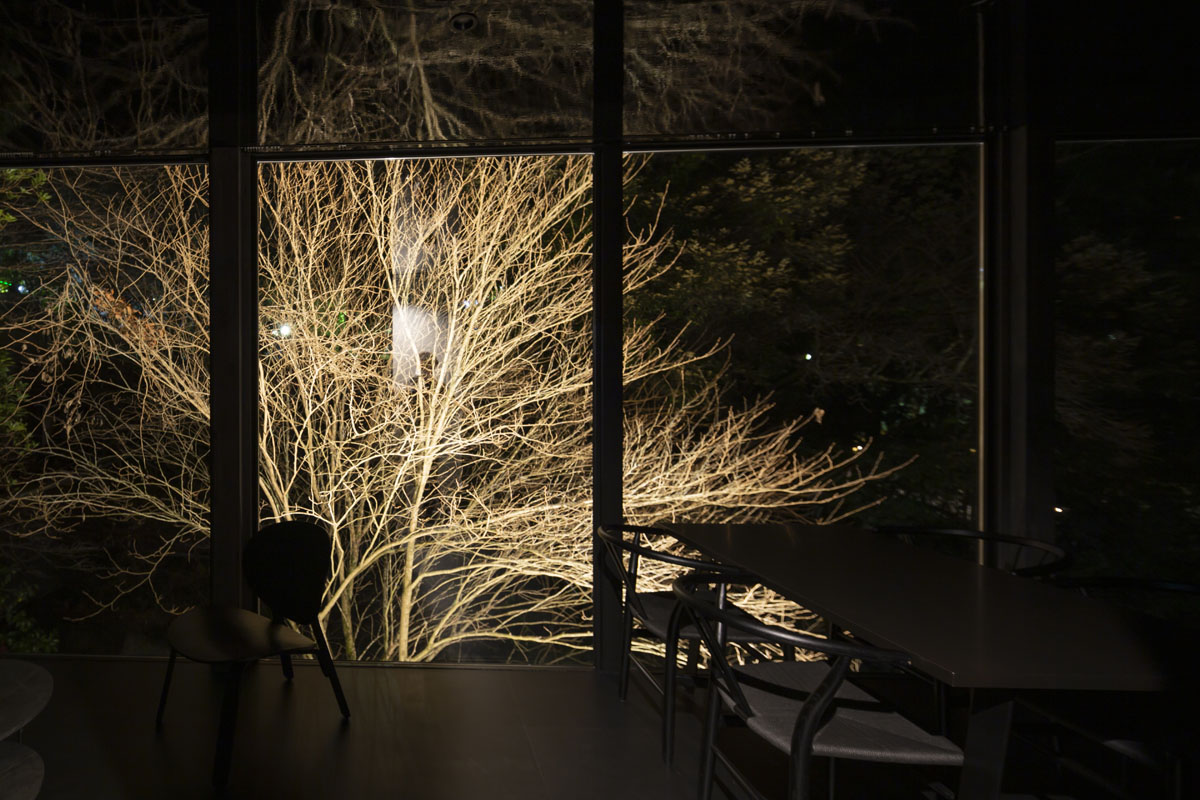 さらに、天井には反射率の高い素材を用い、川や木々の動きを映し出す鏡のような仕掛けを施しています。