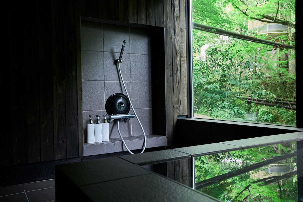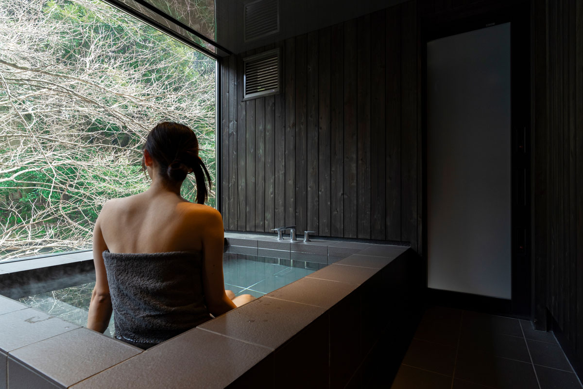 大きな窓の向こうに広がる景色を眺めながら、湯に浸かり、心ゆくまで贅沢な時間を堪能できます。