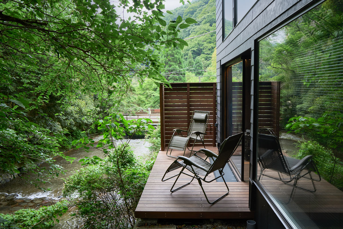 透明度の高い清流・藤木川のほとりに佇むCOCO VILLA 奥湯河原は、自然と一体となる静かな隠れ家です。