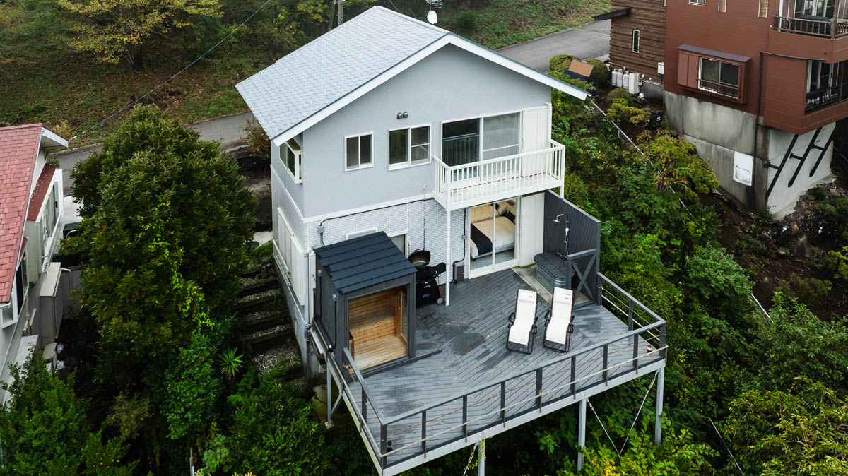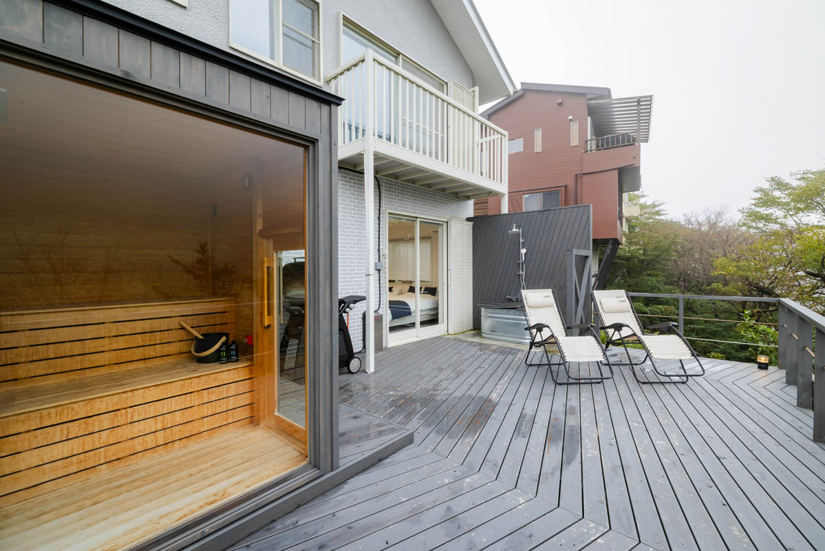 ウッドデッキに一歩踏み出せば、清涼な風と澄んだ空気が全身を駆け巡り、心まで研ぎ澄まされるような感覚に。